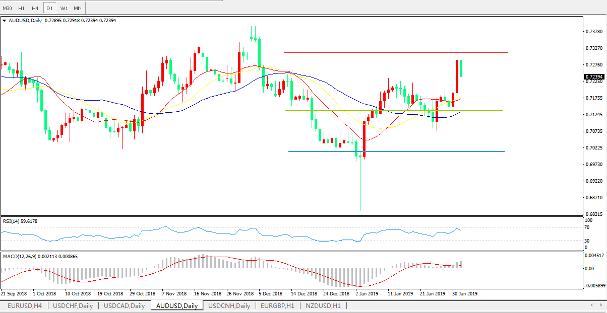 交易策略:在0.7140之上,看涨,目标价位为 0.7310,然后为0.7400