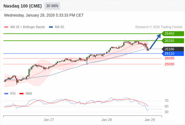 在 26110 之上,看涨,目标价位为 26330 ,然后为 26450 。
