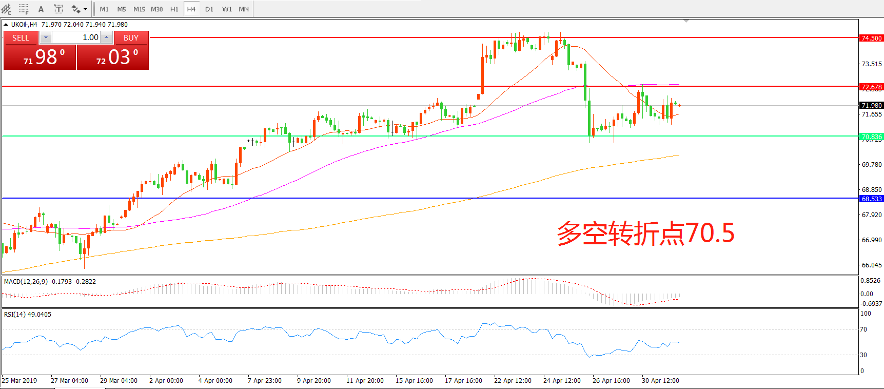 多空转折点:70.50