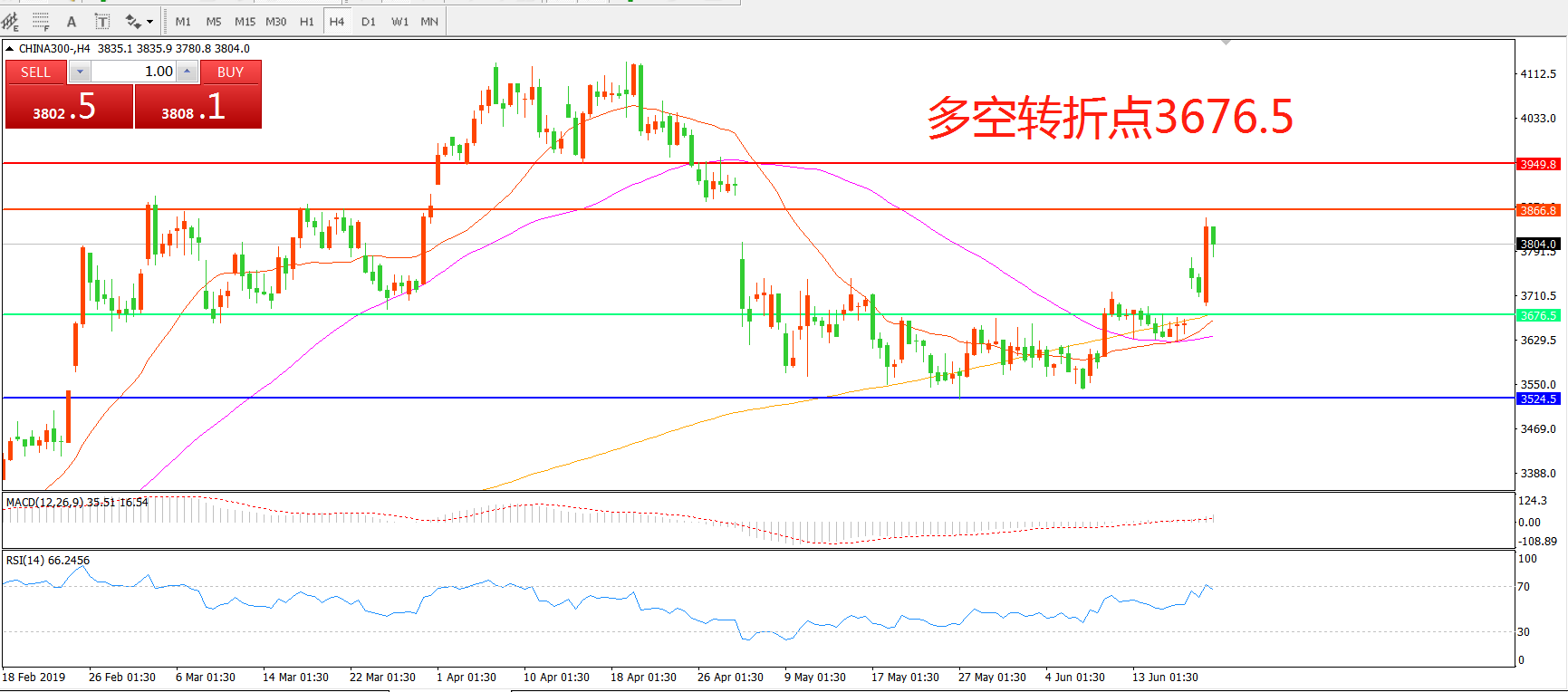 多空转折点:3676.50