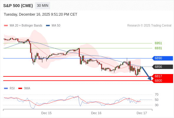 美国标普500指数期货 (H6) 当日内: 短期关键阻力位在6890。
