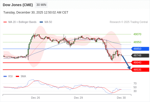 交易策略: 在 48850 之下,看跌,目标价位为 48640 ,然后为 48535 。
