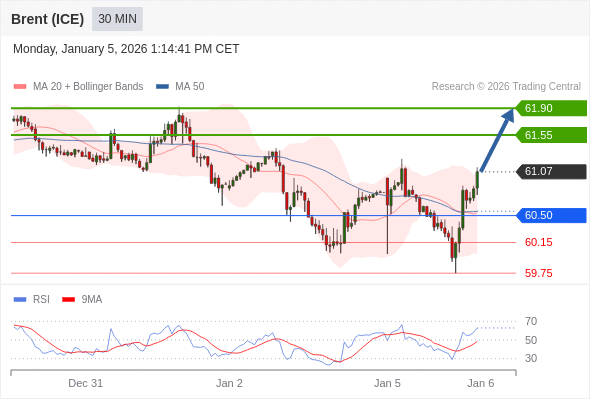 在 60.50 之上,看涨,目标价位为 61.55 ,然后为 61.90 。