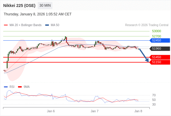 在 52450 之下,看跌,目标价位为 51450 ,然后为 51150 。