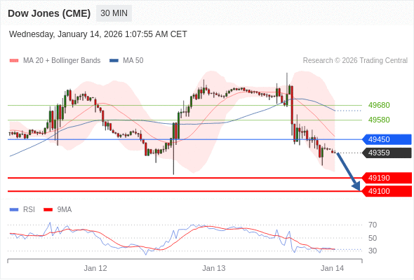 在 49450 之下,看跌,目标价位为 49190 ,然后为 49100 。