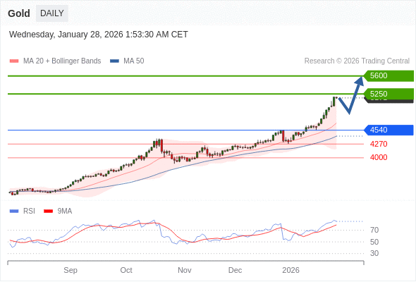 在 4540 之上,看涨,目标价位为 5250 ,然后为 5600 。