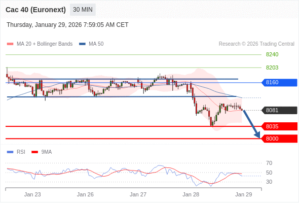 在 8160 之下,看跌,目标价位为 8035 ,然后为 8000 。