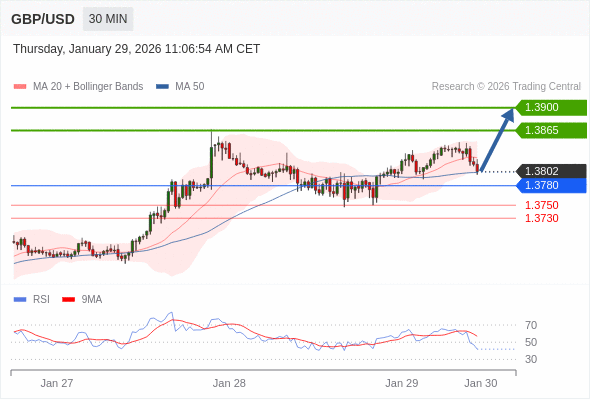 在 1.3780 之上,看涨,目标价位为 1.3865 ,然后为 1.3900 。