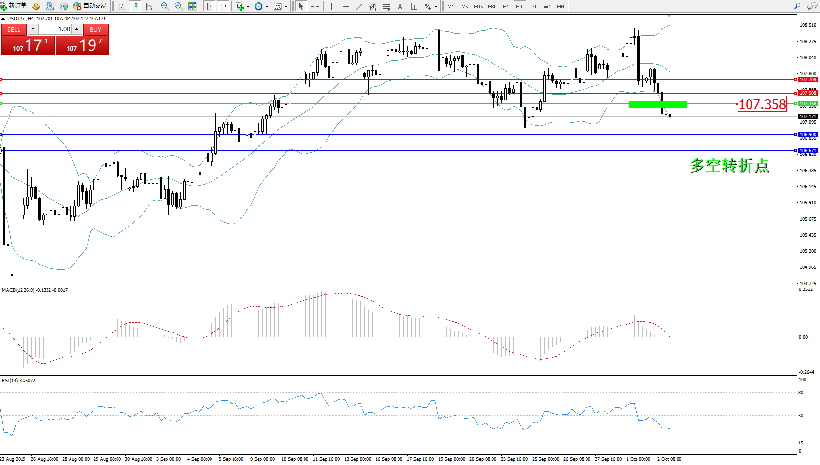 交易策略:107.358下方看跌,目标106.900106.671