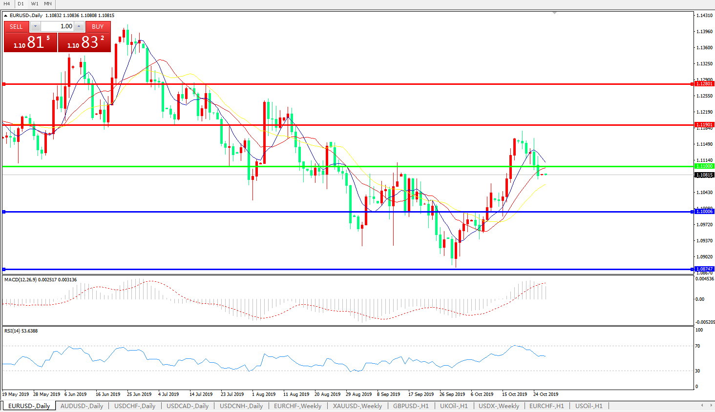 交易策略:1.1100下方看跌,目标1.1000、1.0870
