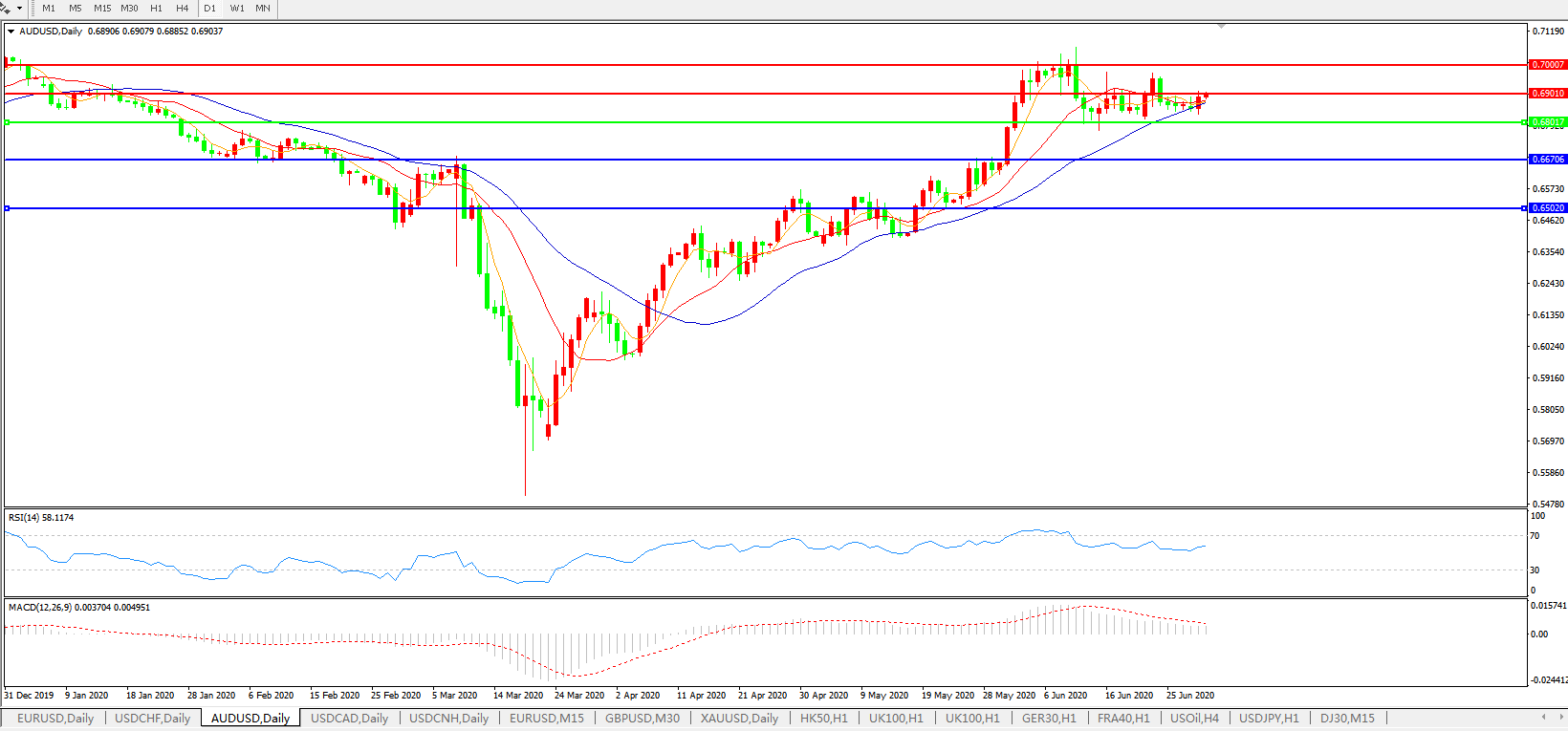 压制位:0.6900 0.7000