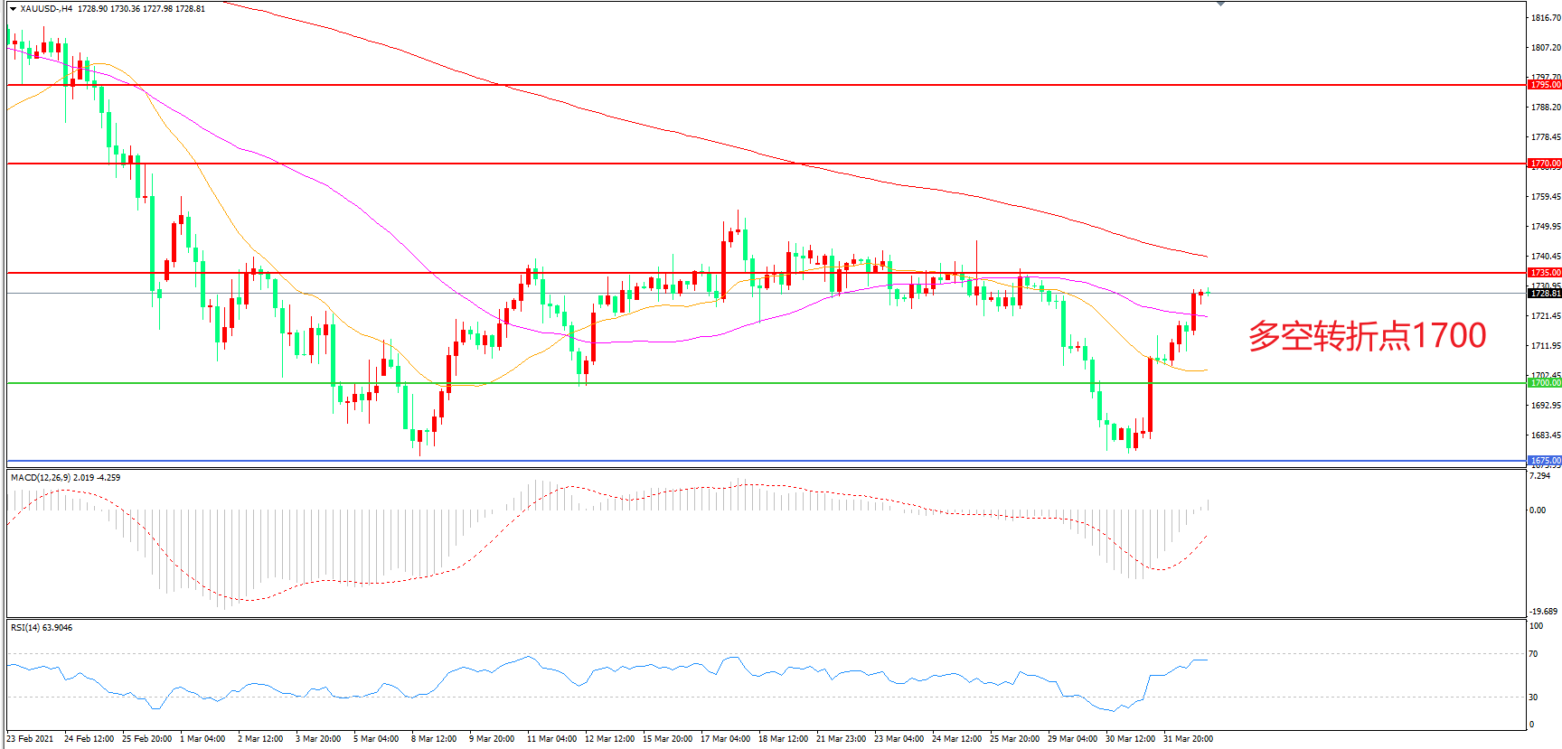 交易策略:在1700.00之上看涨,目标1735.00 1770.00