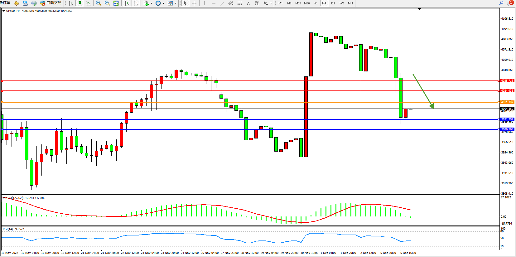 标普SP500——4小时K线图显示: