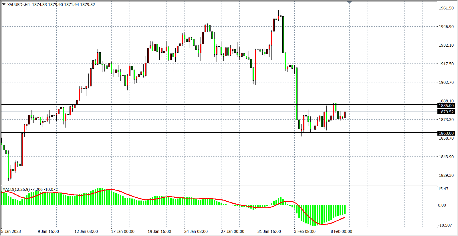 交易策略:在1885.00 之下看跌,目标1860.00         1840.00