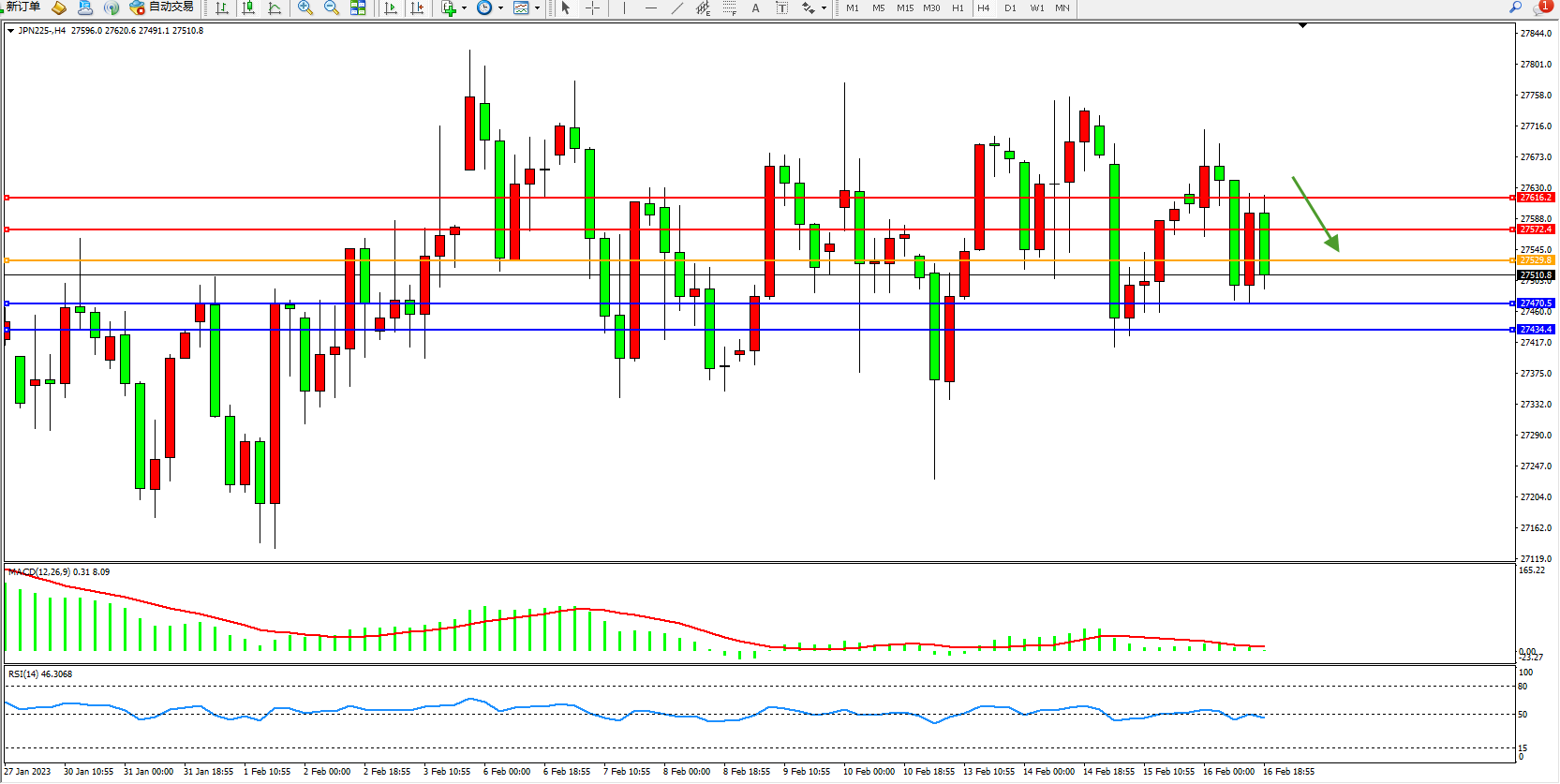 日经225指数2月16日(周四)收盘上涨212.64点,涨幅0.77%,报27714.50点。由于能源进口价格飙升,出口增速放缓,日本1月贸易逆差达到3.5万亿日元(260亿美元),创历史新高。