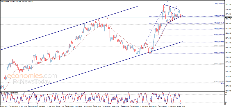 Economies.com在文章中写道,金价开始今日交易后呈现下跌走势,金价施压1962.50美元/盎司并试图确认跌破这一水平,这暗示金价日内将呈新的看空调整,目标瞄准首个看空目标1933.20美元/盎司。