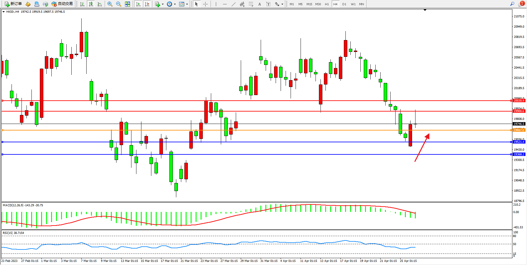 4小时图看:空头动力持续震荡下移后强势反转上移,市场多头伺机涌现拉升,但下行趋势依旧强劲,短期反转或维持窄幅震荡,MACD指标处于0轴线下侧徘徊,RSI指标处于空头区域维持整理;